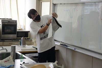 ◇家庭科 ミシンを使ってナップサックを作ります。今日は12名の方のボランティアの方に来ていただきました。