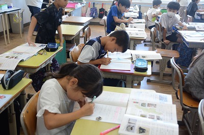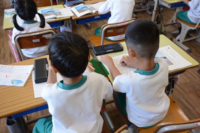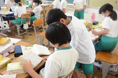 子どもたちは課題について、一人で考え、友だちと意見を交換しながら、さらに自分の考えを深めていました。