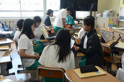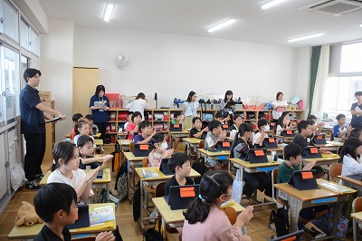 校内研修にかかる公開授業でした。たくさんの教員も参観に訪れました。