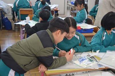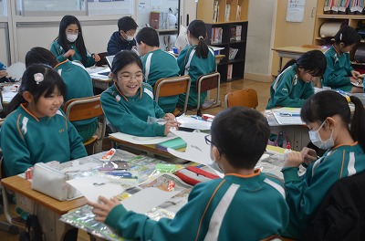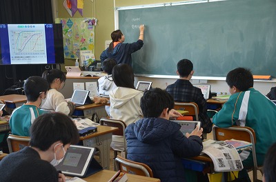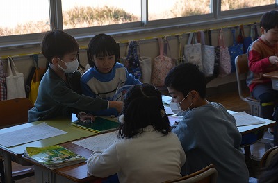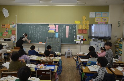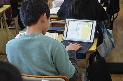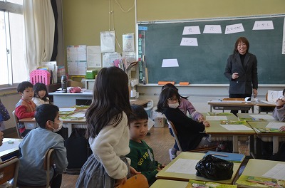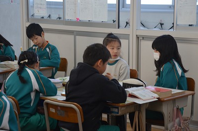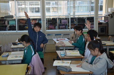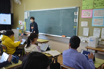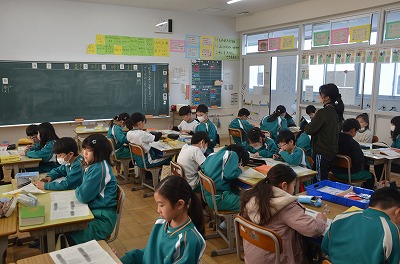 ※ 校内の公開授業の時間でした。ほかの学級・学年からも参観者がありました。
