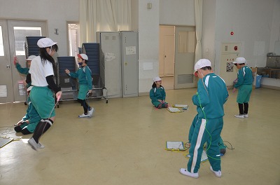 ※グループで跳べた回数を数えたり、お互いのよいところをみあったりしていました。