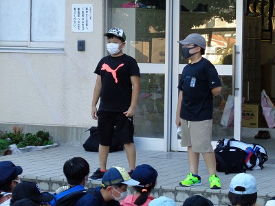 2限目に中学校と合同で避難訓練を行いました。避難の指示が入ると子どもたちは口を押え、姿勢を低くし、しゃべらずに速やかに非難ができました。来ていただいた消防署の方からも後から「子どもたちの避難するときや待っている時の姿にびっくりしました。」とお褒めの言葉をいただきました。