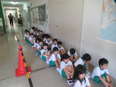 学級ごとに、男女別に行うので、順番がくると保健室前廊下で静かに待ちます。