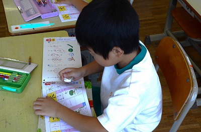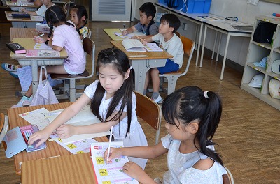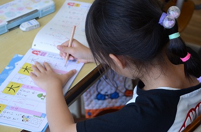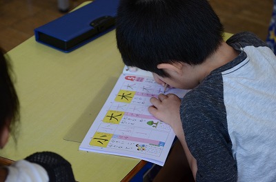▼1学期はひらがなでしたが、2学期は漢字の学習からスタートでした。