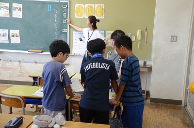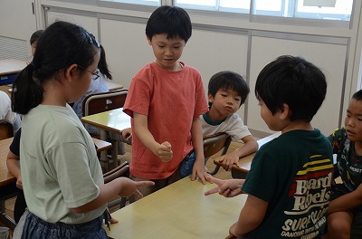 ▼グループごとに係を相談しています。どの班も楽しそうです。