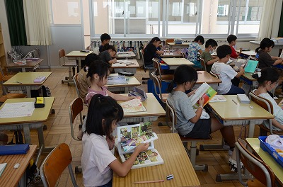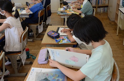 ▼1学期の復習テストが終わった後、少しの時間も無駄にせず読書をします。