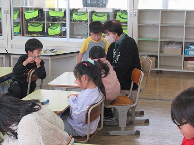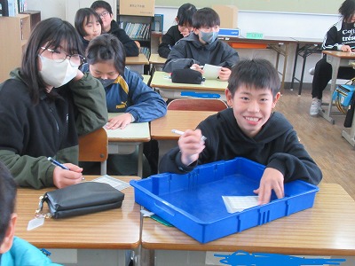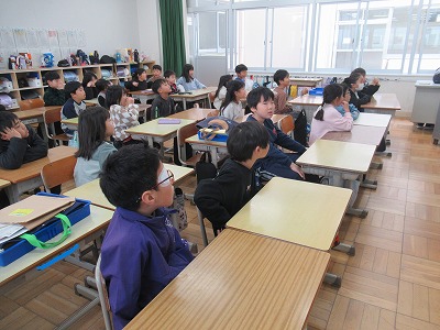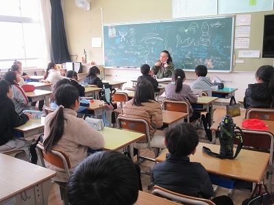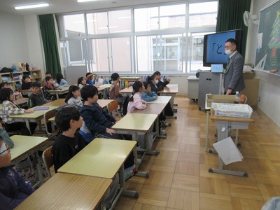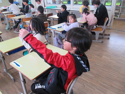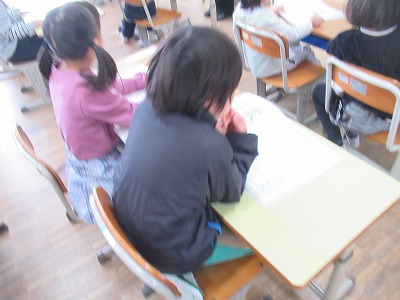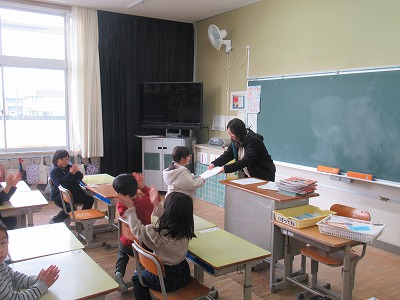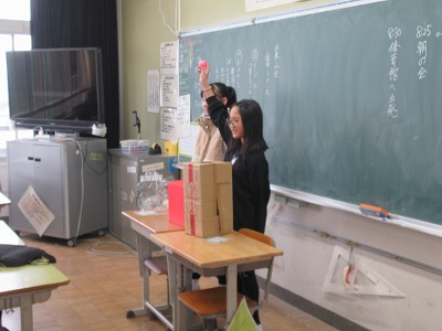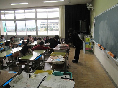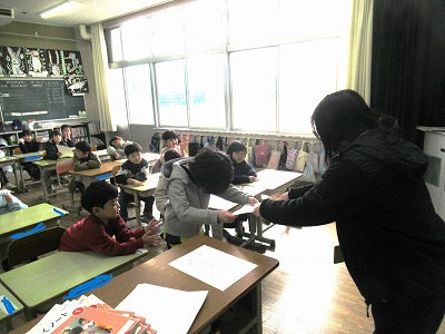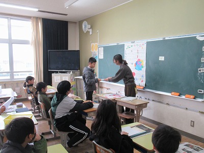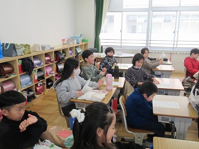 ◇学活 教室で図工展入選者の表彰を行いました。