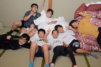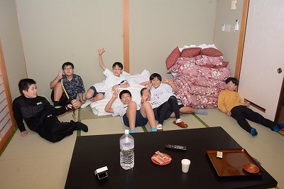 お腹もすいたし、お風呂にも入りたい…自由時間も楽しみです。旅館に着きました。まずは部屋で友だちと夕食までゆっくりします。
