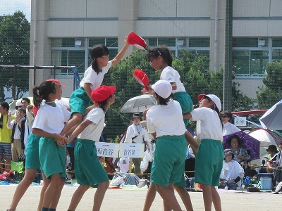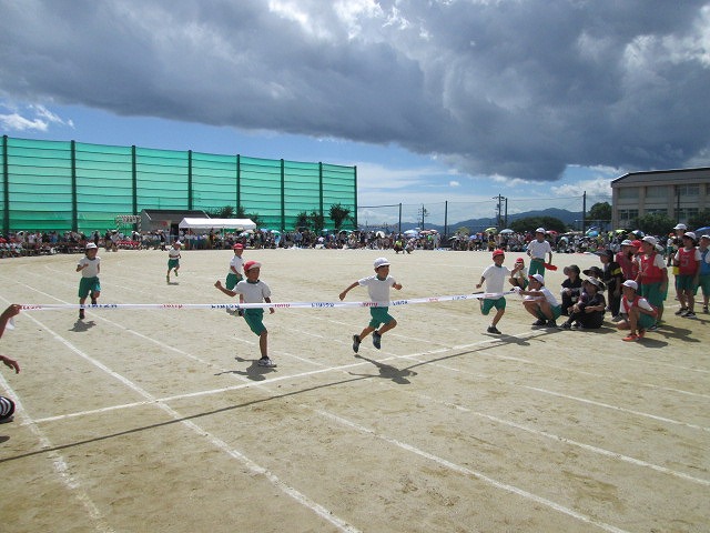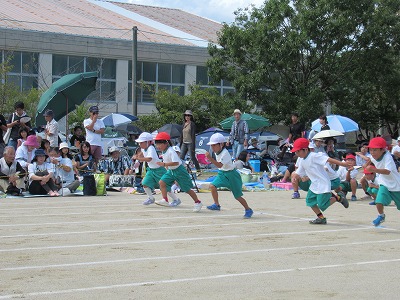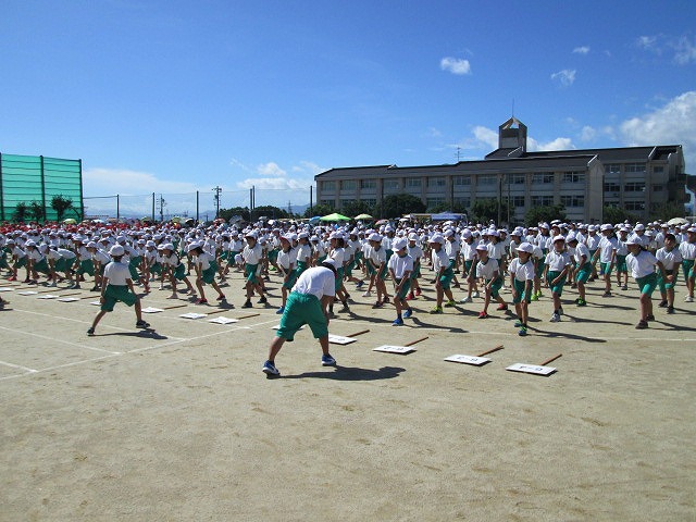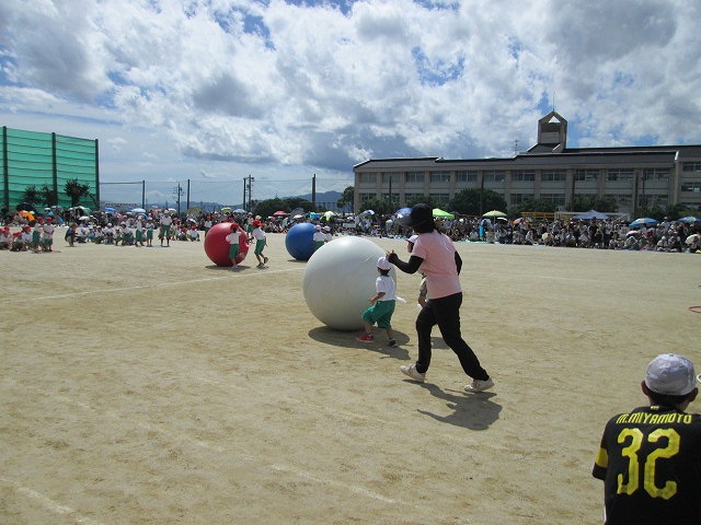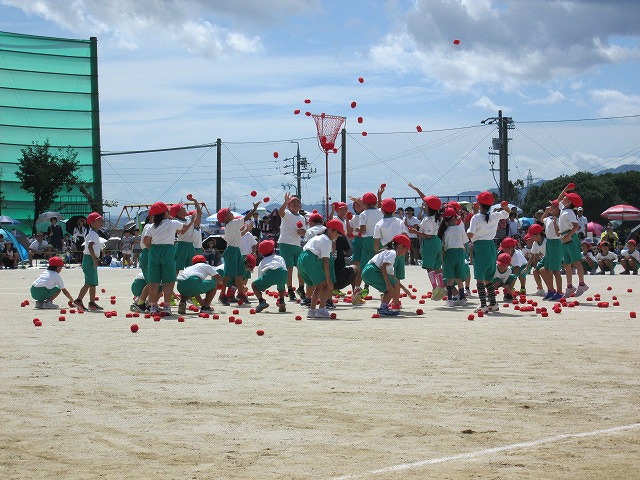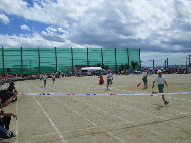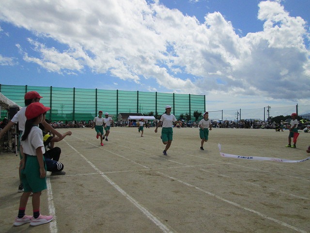 6 夢に向かって走れ!(3年徒競走)7 ダンシング☆玉入れ(2年学年種目)8 ひゃくえむ(6年徒競走)9 おおまり ウェーブ(1年学年種目)10 南風エクスプレス(5年徒競走)残念ながら、PTA・地域種目「玉入れ競争」は開始時刻の遅れから割愛されました。ご理解ください。