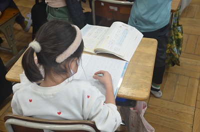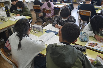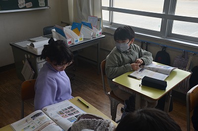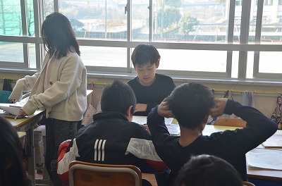 【社会】テスト直前だったようです。少しでもいい点を取るように子どもたちは復習をしあいました。