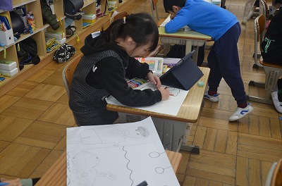 ◇英語科 環境問題を取り上げたポスターを描きます。言葉は英文で入れます。