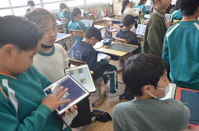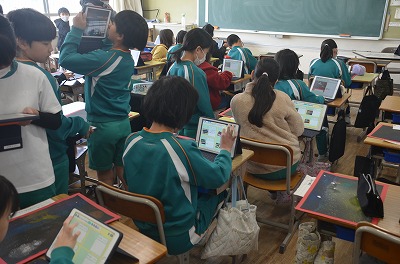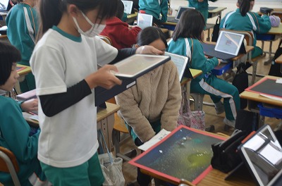 ◇図工 鑑賞 友だちの作品を見て回って、すごいと思った作品の写真を撮り、どこが素敵かを伝い合いました。