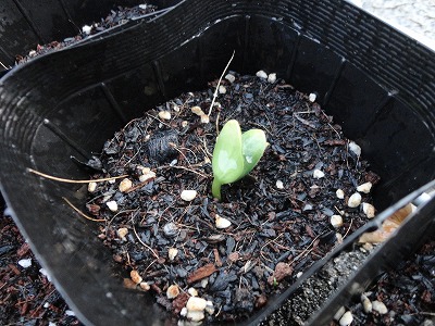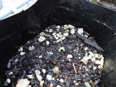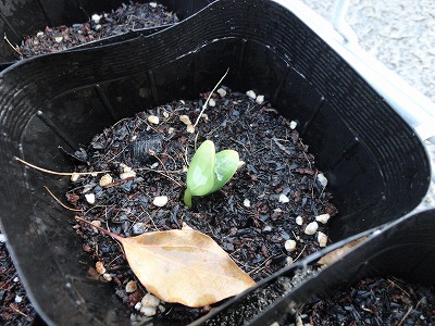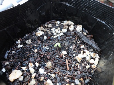4月6日に、試験的にまいた種がやっと芽を出しました。発芽するためには、「水」「空気」「適度な温度」が要るようです。気温が、少し低かったので遅れたかも知れません。実はこの種、5年前にへちまを育てた時にできたものです。ずっと残してあって、その間も生命の種が生き続け、必要な条件で、命を目覚ませることができたのですね。本当に、自然って、命って、偉大ですね。すばらしいですね。