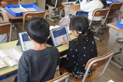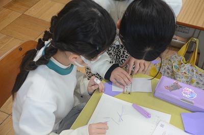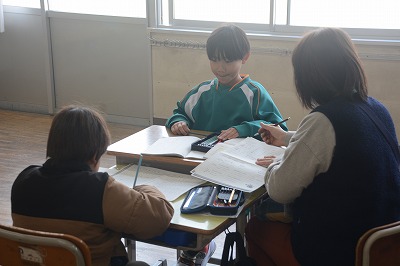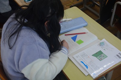 ノートに図を書いて一生懸命考える子、友だちと真剣に考える子など様々でした。