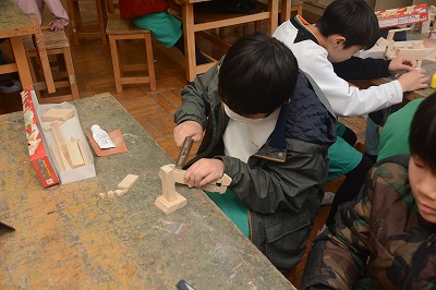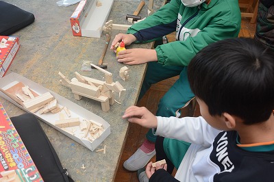 ◇図工 のこぎりを使って木を切って自分のつくりたいものをつくりました。