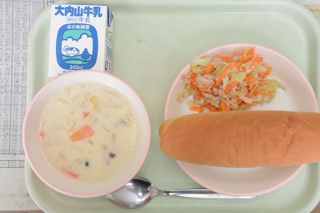 【給食】パン 牛乳 シチュー ツナサラダ