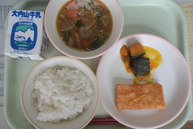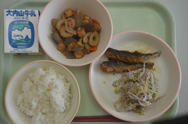 【給食】ご飯 いわしの南蛮漬け 筑前煮 しそあえ 牛乳
