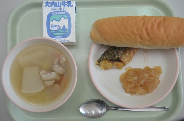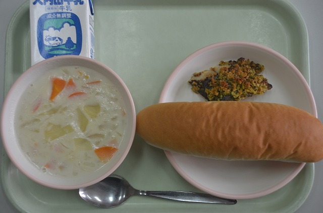 【給食】パン 牛乳 さわら ミルクポタージュ