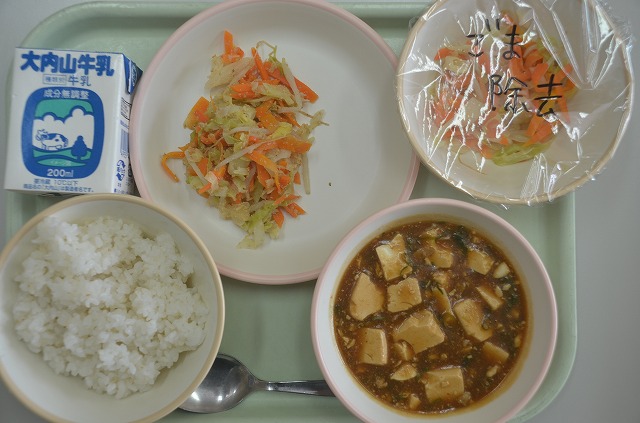 【給食】ご飯 牛乳 麻婆豆腐 サラダ