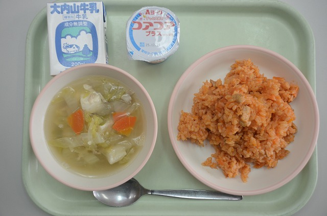 【給食】チキンライス 牛乳 スープ ヨーグルト