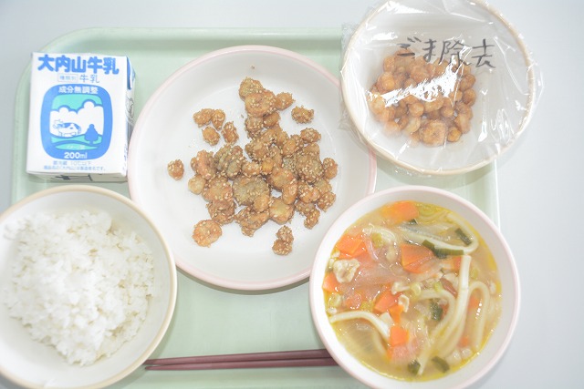 【給食】ご飯 牛乳 いかのゆず風味あげ 味噌汁