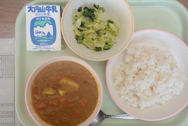 【給食】牛乳 カレーライス(ご飯)サラダ