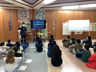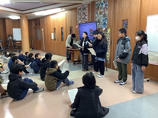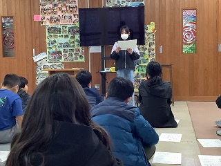 終業式後、各種表彰伝達式を行いました。読書感想文で優秀な賞に輝いた作品について、みんなで発表を聞きました。