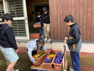 早速、入学式の会場づくり‼‼大忙しです(3・4年生)