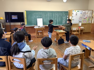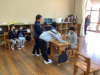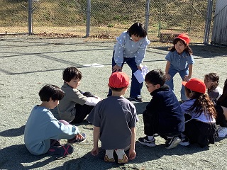 今日は3・4年生。最初はジャスチャ―ゲームです。