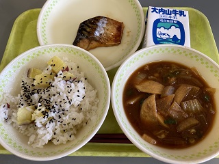 10月17日(金)薩摩芋ご飯、鯖の一味焼き、豚汁