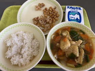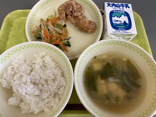 10月27日(月)鶏の唐揚げ、中華和え、わかめスープ
