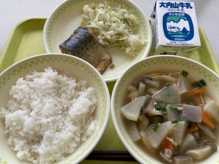 10月31日(金)鯖の生姜煮、けんちん汁、キャベツの浅漬け