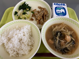 2月12日(木)鶏牛蒡、玉葱の味噌汁、