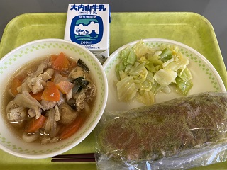 2月17日(火)美杉茶ときな粉の揚げパン、信田饂飩、