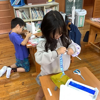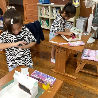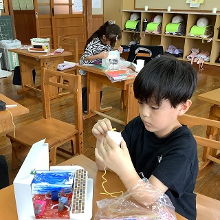 いろんな材料を組み合わせ、隙間ちゃん好みの家を作ります。(1年生)