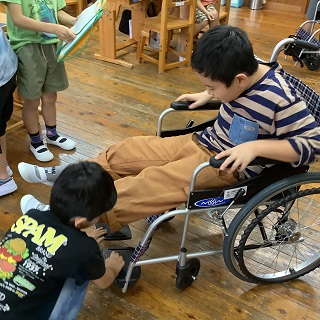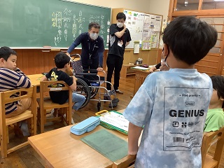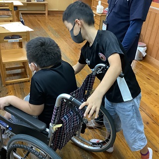 車いす体験。社会福祉協議会の方々にお世話になりました