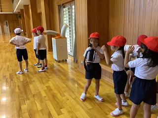 1・2年生の体育。少し暑さも和らいできています。