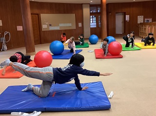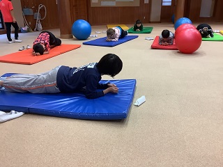 保健・給食委員会では、放課後を利用して体幹を遊びながら鍛えるトレーニングを伝授しました!!今日は、3・4年生対象です。