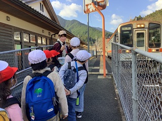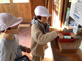 1・2年生は、名松線を利用して、八知の保育園、京屋さん、図書館、美杉総合文化センターを見学しました‼
