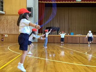 1年生から4年生までの体育です。3・4年生は片付けも上手い!
