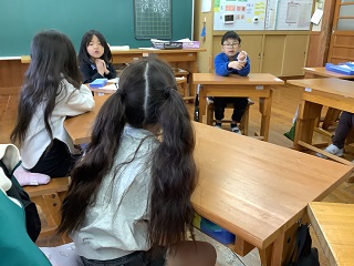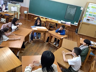 1・2年生は、生活。お楽しみ会でなにする?1年生が司会です。