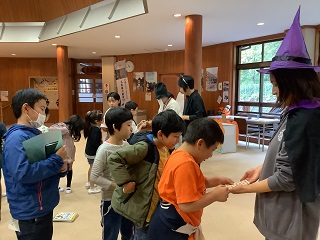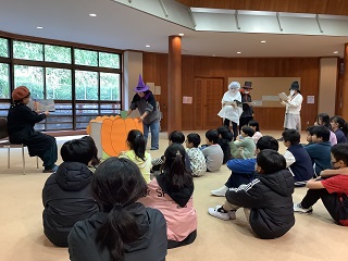 図書ボランティアさんと先生でお送りしたお話会。大きなカボチャは?