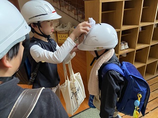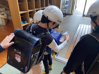 5年生が2年生のランドセルを自分のタオルで拭いてあげて!!やさしいね
