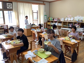 今日は、多くの子が大好きな津ぎょうざ。好き嫌いはあるものの、地域の名物や同じものを食べる空間は素敵です。