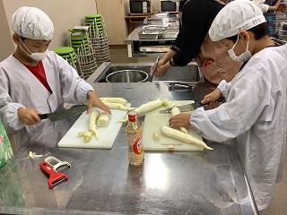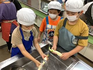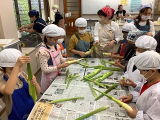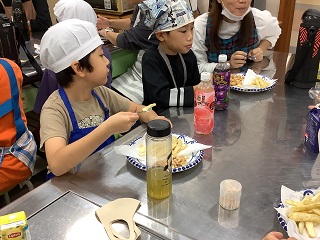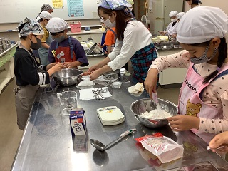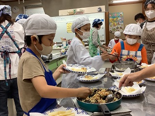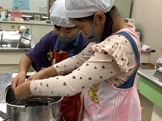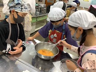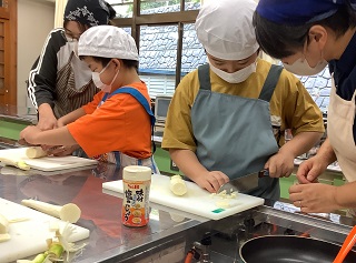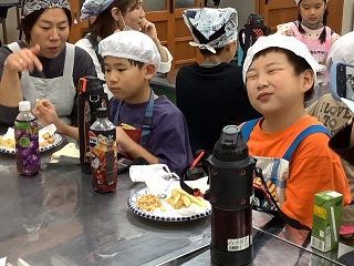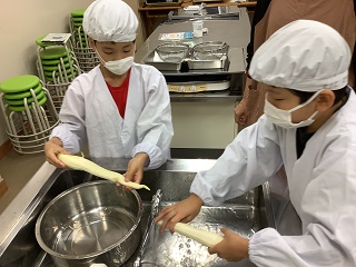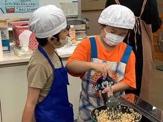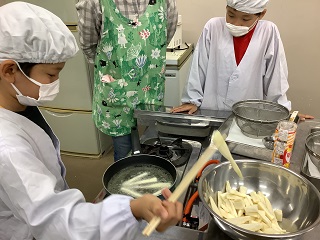 3・4年生は、学級PTAです。昨日のマコモの収穫を受けて、保護者と一緒にパンケーキとフライドマコモです。