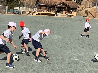 サッカーの赤白対決‼2回の作戦タイムを経て、さあ出陣‼(1・2年生体育)