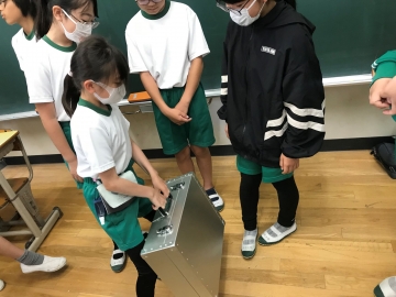 6月7日(金)、6年生の各クラスに津税務署の職員さんが来ていただき、税金の使い道や役割などを身近な例を挙げながら分かりやすく説明していただきました。また、ジュラルミンケースから1億円が出てくると、「えー!本物?」と歓声が上がり、一億円の重さに驚いた様子でした。