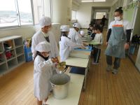 配膳は、6年生が手伝いに来てくれました。
