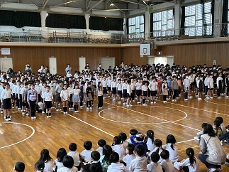 児童会が1年生を歓迎する会を開催してくれました。児童会会長のあいさつをしっかり聞いていた1年生、そして歓迎の言葉を自分の言葉で心をこめて伝えていた6年生の児童会会長、すばらしいです!最後に、2年生から6年生で、校歌のプレゼントをしました。次の全校集会では一緒に歌おうね☆