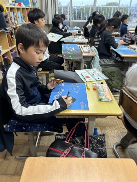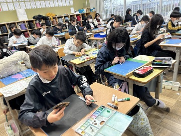 5年生は図工で版画に挑戦!少しずつ色を重ねていきます。どんな作品ができあがるのか楽しみです。